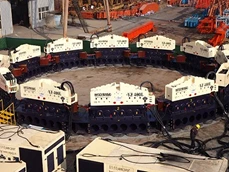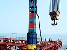 电动振动锤在温州洞头半屏山大桥施工,开始将产品用于海工装备